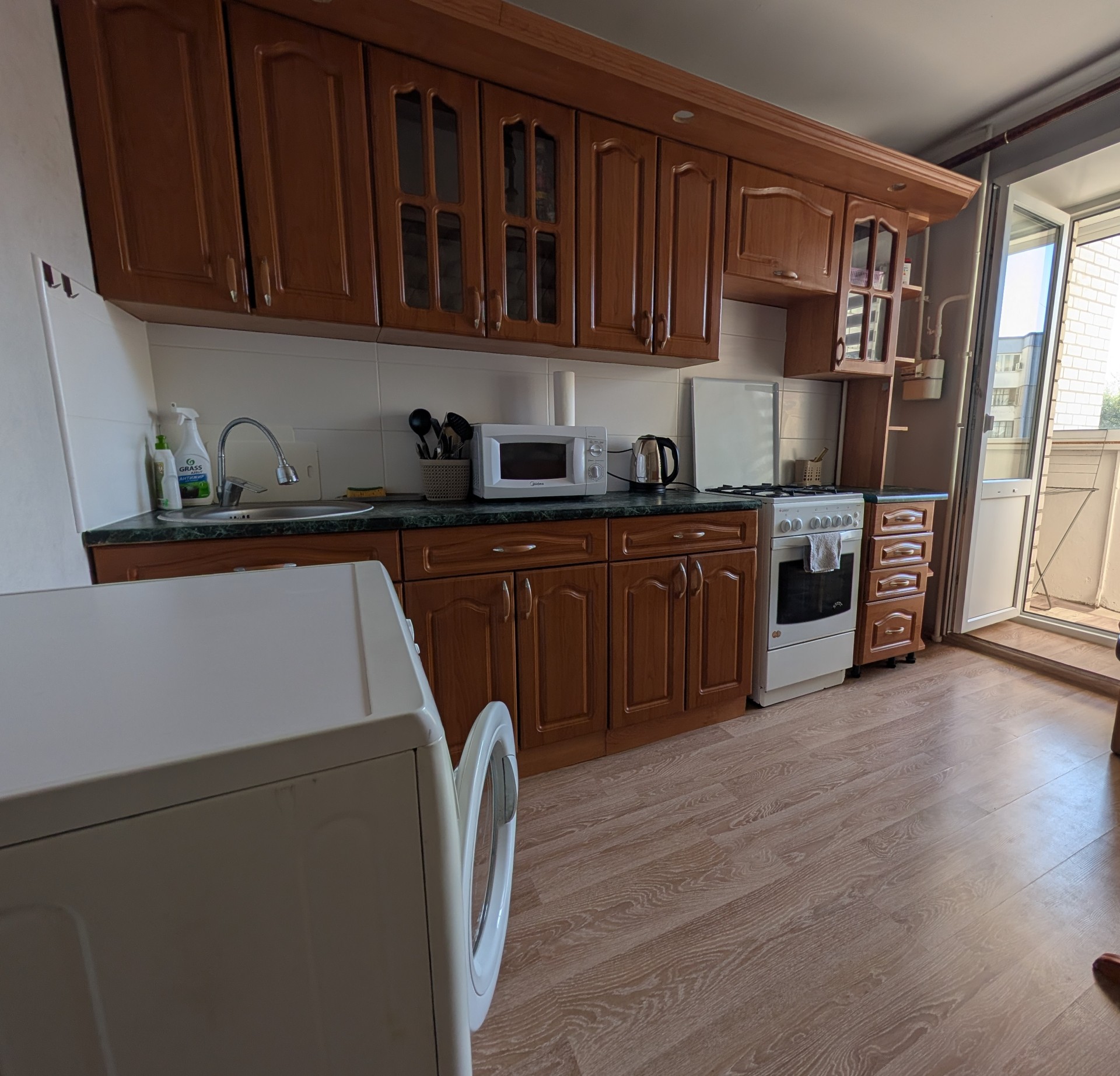 Беспроводной интернет Wi-Fi, Телевизор, Домофон, Полотенца, Кабельное/спутниковое телевидение, Постельное бельё, Мыло, Туалетная бумага, Стиральная машина, Утюг, Фен, Шампунь, Застеклённый балкон/лоджия, Ванна, Холодильник, Микроволновая печь, Посуда