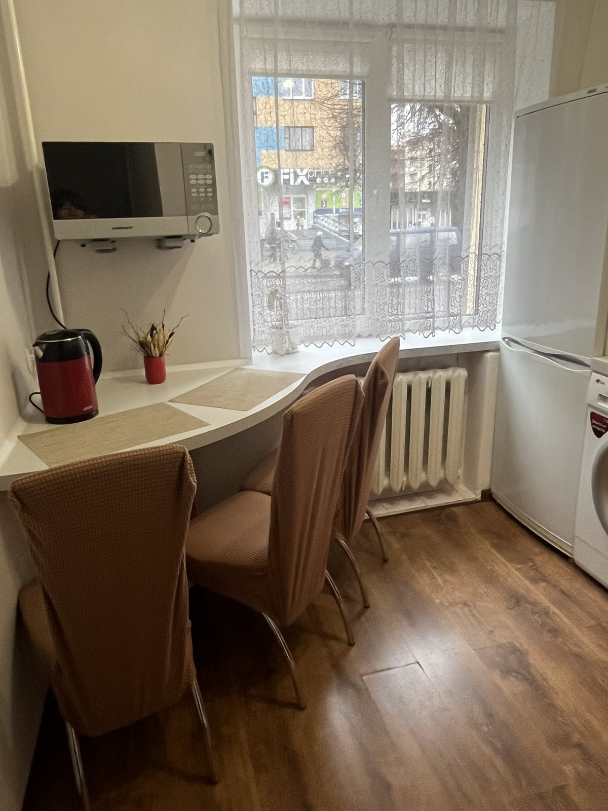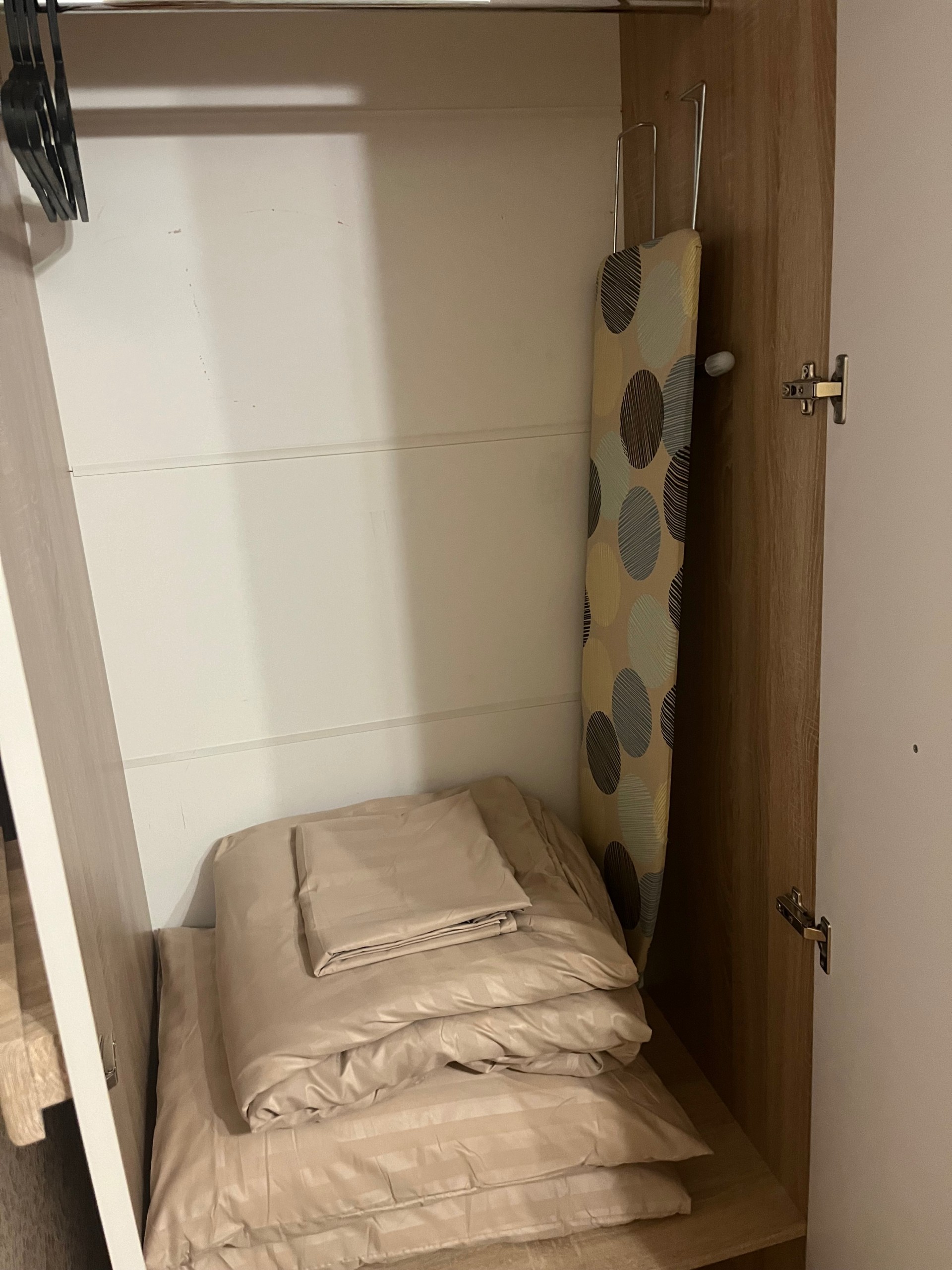УдобстваБеспроводной интернет Wi-Fi, Телевизор, Домофон, Полотенца, Кабельное/спутниковое телевидение, Постельное бельё, Мыло, Туалетная бумага, Стиральная машина, Кофе, чай, Утюг, Фен, Ванна, Автономный подогрев воды (бойлер/колонка), Холодильник, Микроволновая печь, Посуда